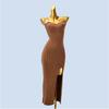 Fashion Slimming Chain Spaghetti Straps Chest Wrap Knitting Sweater Slit Slim-Fitting Hip Length Dress Spring Autumn Underwear Women