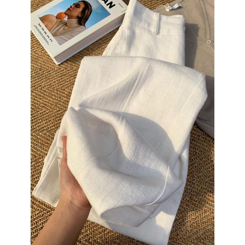Weiße Tencel-Leinenanzugshose Damen neue Sommer leichte und kühle Scimitar-Hose Old Money Wind Weitbeinhose