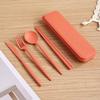 4-teiliges Geschirrset aus Weizenstroh, tragbares Geschirr, Messer, Gabel, Löffel, umweltfreundliches Reisebesteck, Utensilienbox, Essstäbchen-Set