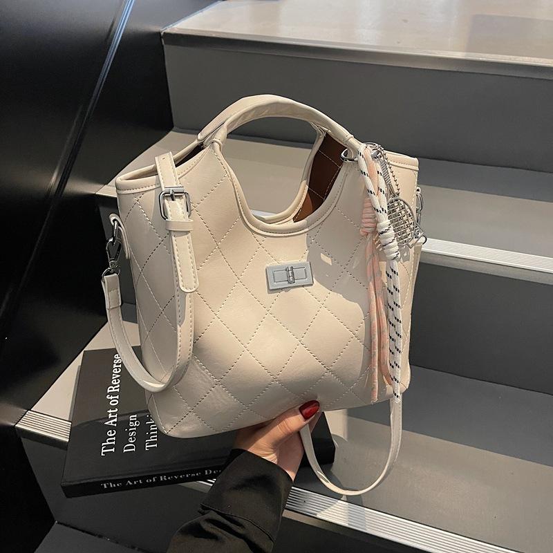 - **Details zur strukturierten Hobo-Tasche**: Verfügt über eine elegante, strukturierte Hobo-Silhouette mit einem gesteppten Muster, einer Markenplakette, einem oberen Griff, einem verstellbaren Schulterriemen und einem optionalen Kettenaccessoire, das einen ausgefallenen und stilvollen Charme versprüht.. Mehrere Farboptionen (Schwarz, Silber, Off-White, Rosa) mit oder ohne das Accessoire bedienen vielfältige Stilpräferenzen.