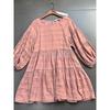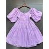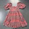 Foreign Trade Order Ent * O French style Retro Plaid Square-Cut Collar Twill Puff sleeve Waist Hugging A Word Swing Dress Women