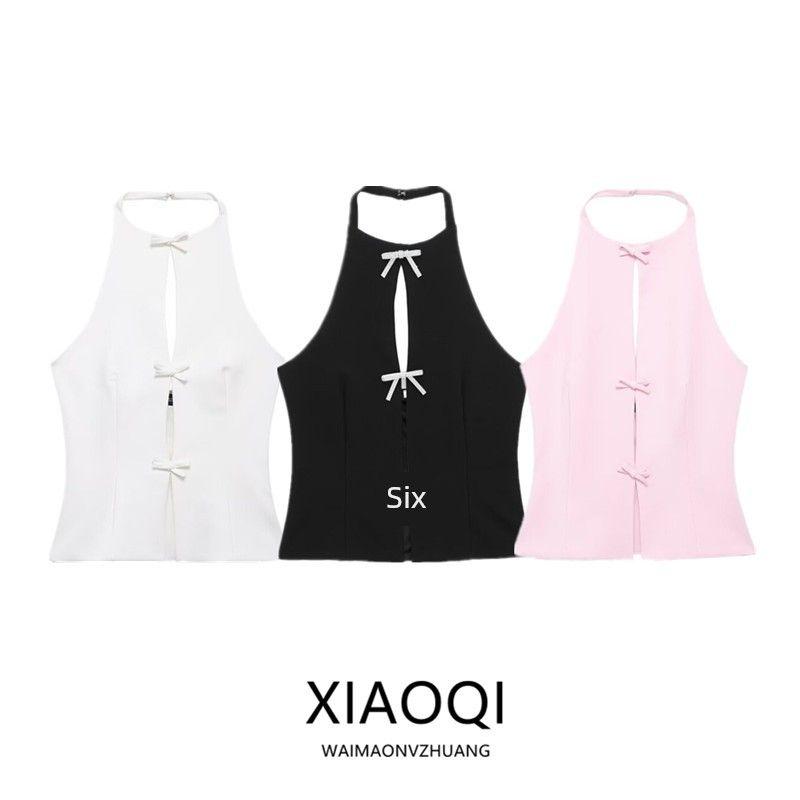 Fashion Style 2024 Summer New Arrival Women's Clothing Stylish Easiest for Match Bowknot Decoration Hanging Collar Tops 4772009