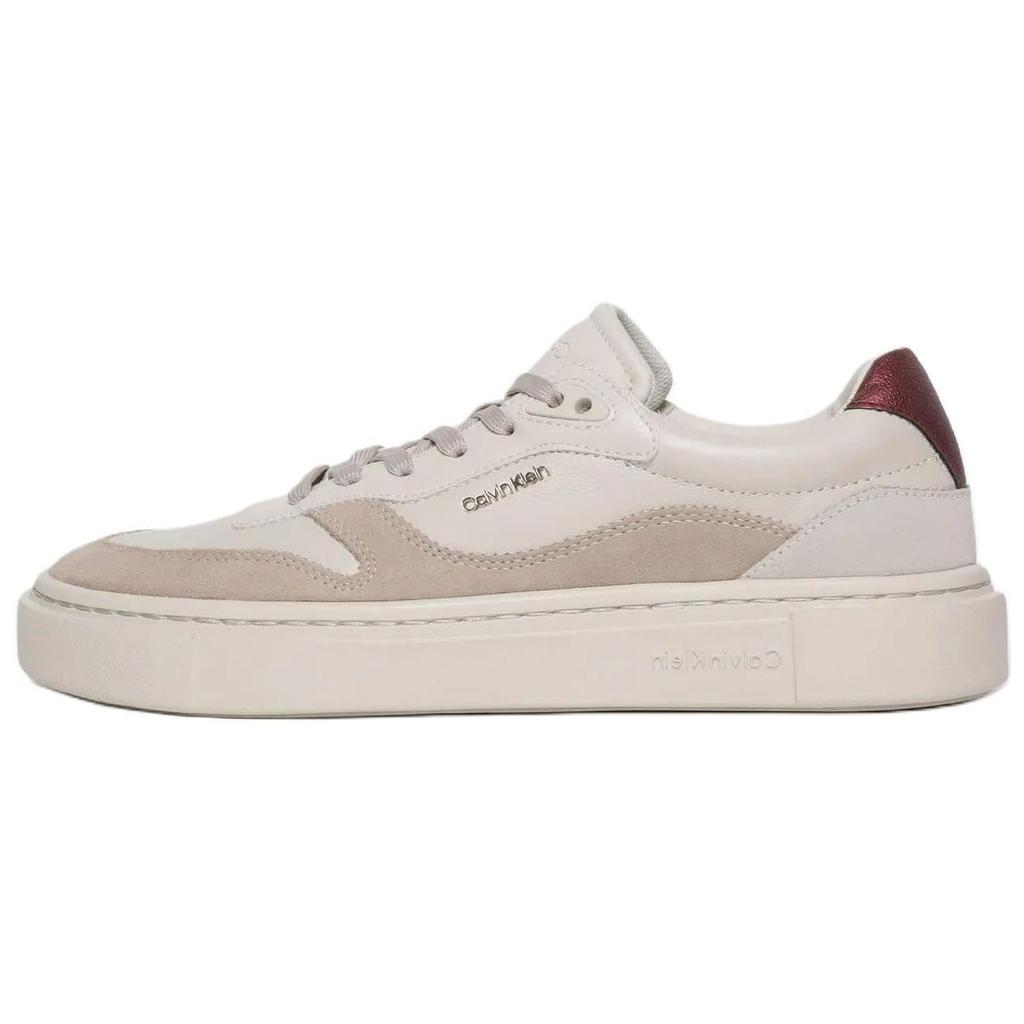 Calvin Klein Wildleder Metall-Logo Runde Zehenpartie Schnürung Low-Top Sneakers Damen-Sneakers Beige HW0HW02114-0IO