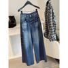 Washed cat whisker straight jeans women's autumn new retro niche wide-leg loose mopping long pants