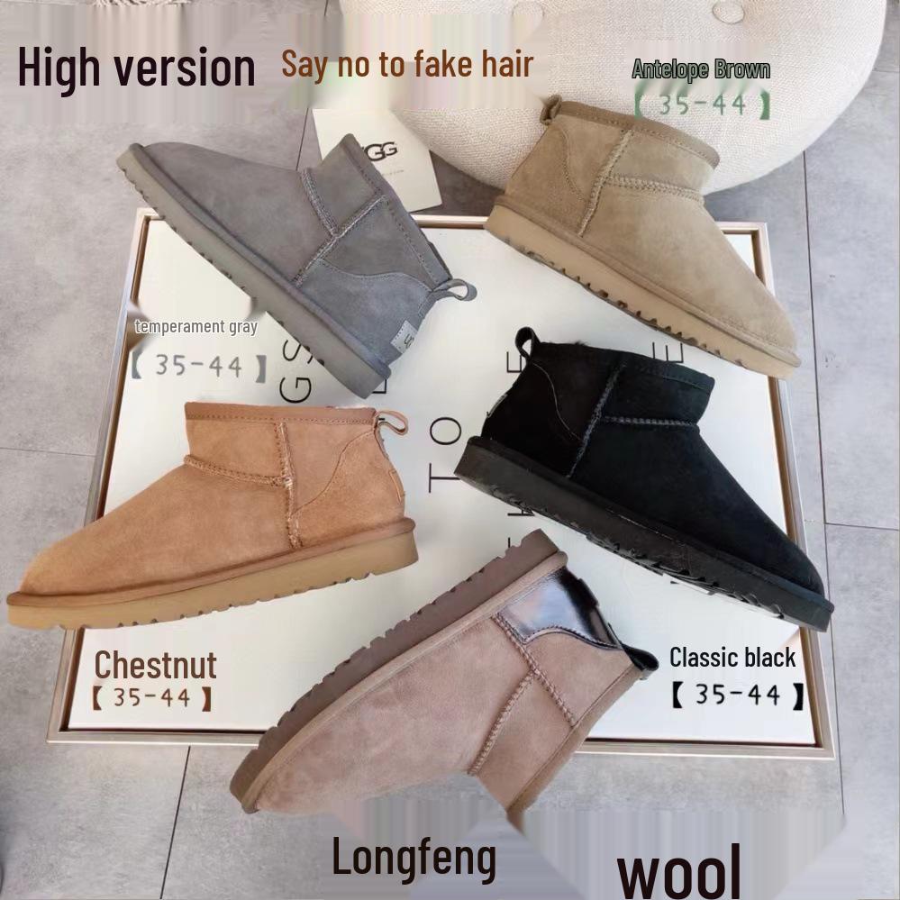 Erleben Sie ultimativen Komfort und Wärme mit diesen Mini-Schaffell-Schneestiefeln, entworfen für das winterliebende Paar.. Diese Stiefel sind aus luxuriösem Fell und Schafsleder gefertigt und bieten eine kuschelige Passform, die Ihre Füße in natürliche Wärme hüllt.. Das Innere ist mit einem Futter aus Naturfell und Schafsleder ausgestattet, das zusätzliche Isolierung gegen kaltes Wetter bietet.. Eine Wollsohle sorgt für maximalen Komfort, sodass sich jeder Schritt weich und gedämpft anfühlt.. Mit einem stilvollen, rutschfesten Design sind diese Stiefel perfekt zum Gehen auf schneebedeckten oder eisigen Oberflächen.. Speziell auf Frauen zugeschnitten, bieten sie sowohl Mode als auch Funktion für die kalten Wintertage.