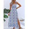 Foreign Trade Lu's Exquisite Print Square Collar Niche Design Open Collarbone Sling Backless Sexy Vacation Beautiful Dress