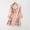 Export Single Lady Mesh Embroider Flower Pink Perspective Fashion Sweet 3/4 Flare Sleeve Special Dress