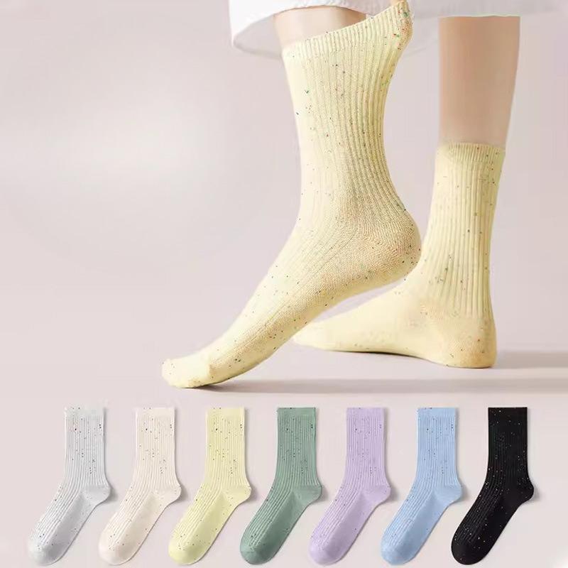 Herbst- und Winter-Punktgarn-Mittelwadenstrümpfe in Uni, gestreifte Doppelnadel-Socken, süße und niedliche Mädchen, Frotteesocken