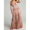 Export Stylish New Arrival Classy Mesh Flocking Sexy Deep V Ladies Host Banquet Party Dress Dress