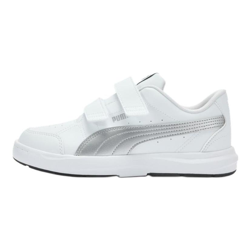 Puma Evolve Court V Bequeme Vielseitige Langlebige Atmungsaktive Low-Top Kinder Skateschuhe Kinder Skateschuhe Weiß Silber 404315-11
