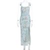 Pure Desire Style Europe and America Cross Border Summer Dress Print Sleeveless Split Ruched Fashion Sexy and Breathable Silm Dress