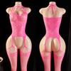 Transparent Pink Erotic Costume Crotchless Women Fishnet Mini Bodycon Dress For Sex Mesh Hollow Out Underwear Sexy Lingerie
