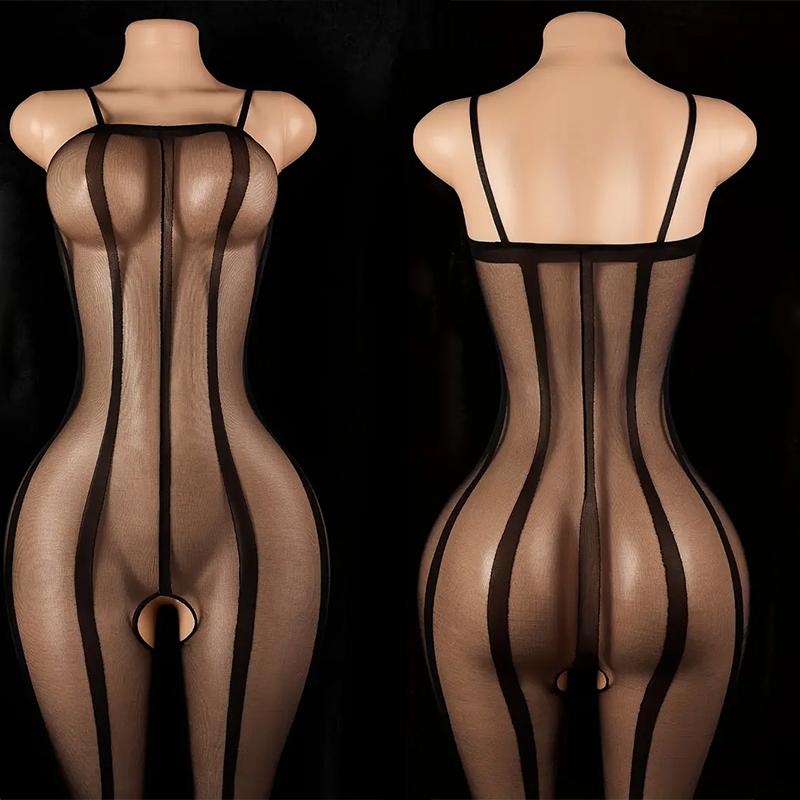 Sexy One Piece Crotchless Backless Transparent Black Striped Socks Sex Exotic Bodysuit Lingerie Bodystocking Erotic Costumes