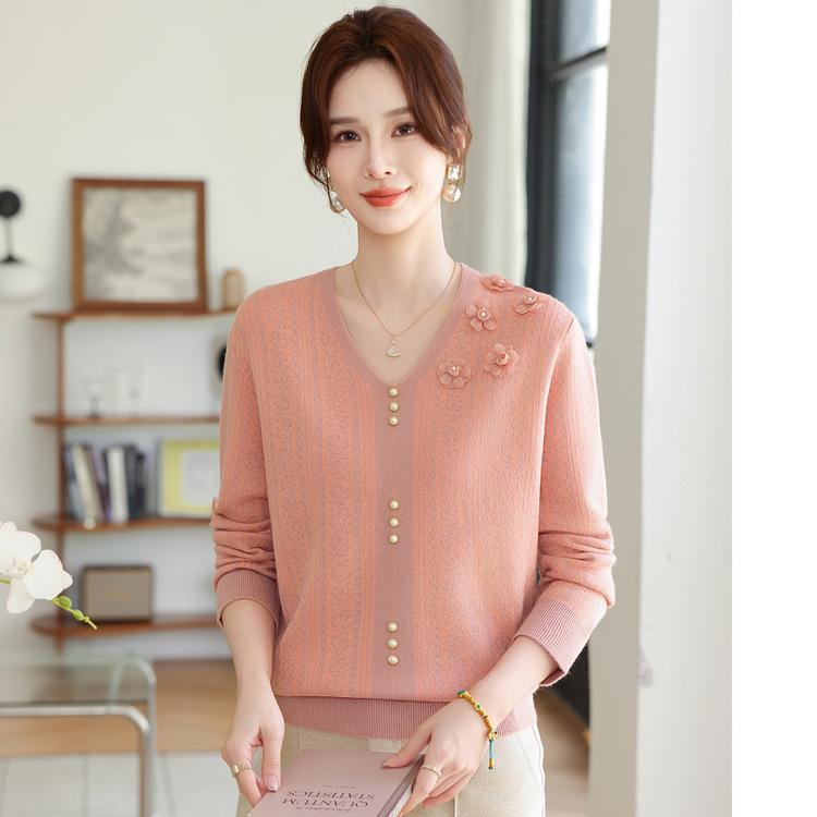 Herbst und Winter Mittelalterliche und ältere Damen Hochzeitsbankett Oberteile Würdevoll und elegant Mutter Herbstkleidung Mode V-Ausschnitt Strickshirt