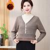 Damen Halbhoher Kragen Plus Samt Verdickter Fake Zweiteiler Mutterpassender Strickpullover Integrierter Samt Pendeln Vielseitig