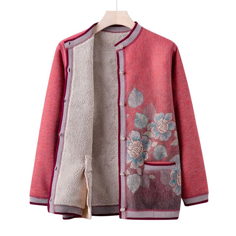 Omas Winterkleidung Plus Samtpullover Mittelalterliche und ältere Strickjacke Damen Alte Dame Herbst Neue Kleidung Mutterjacke