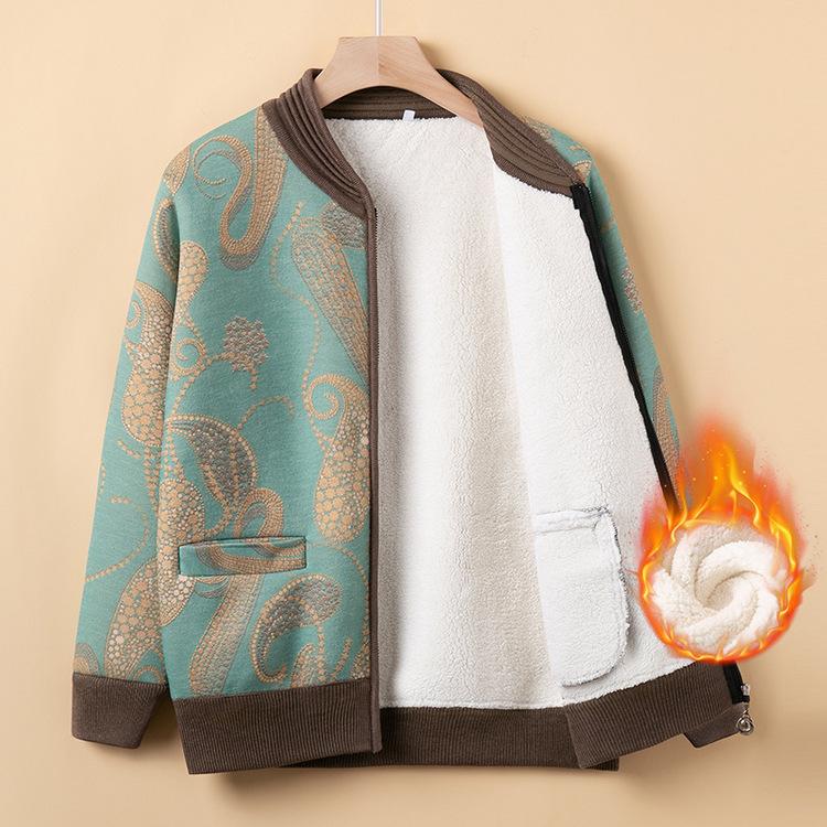 Omas Herbst- und Winter-Plus-Samt-Verdickte Pulloverjacke Mittelalterliche und Ältere Mütter Winterwarme Strickjacke Oberteil
