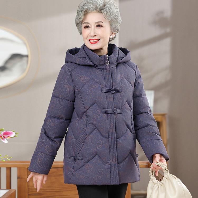 Middle-aged and Elderly Women's Down Cotton Jacket with Hood 60-year-old Grandma's Thickened Cotton Coat Mother-in-law's Warm Cotton Jacket