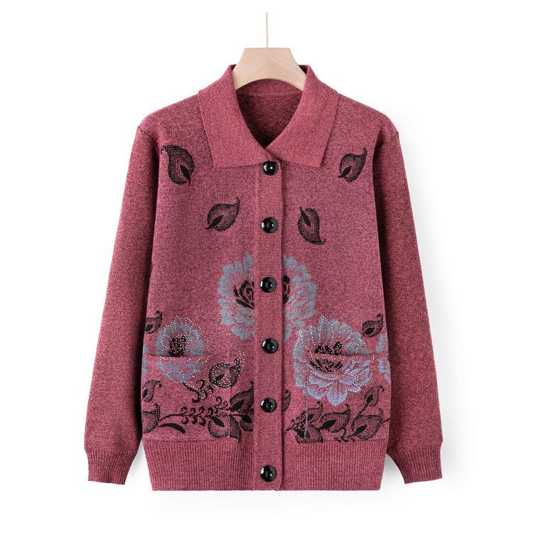 Pullover-Cardigan für Frauen mittleren Alters und ältere Frauen, 60 Jahre alt, Mutterkleidung, Herbstkleidung, Strickpullover-Mantel für alte Dame, Herbstkleidung für Oma