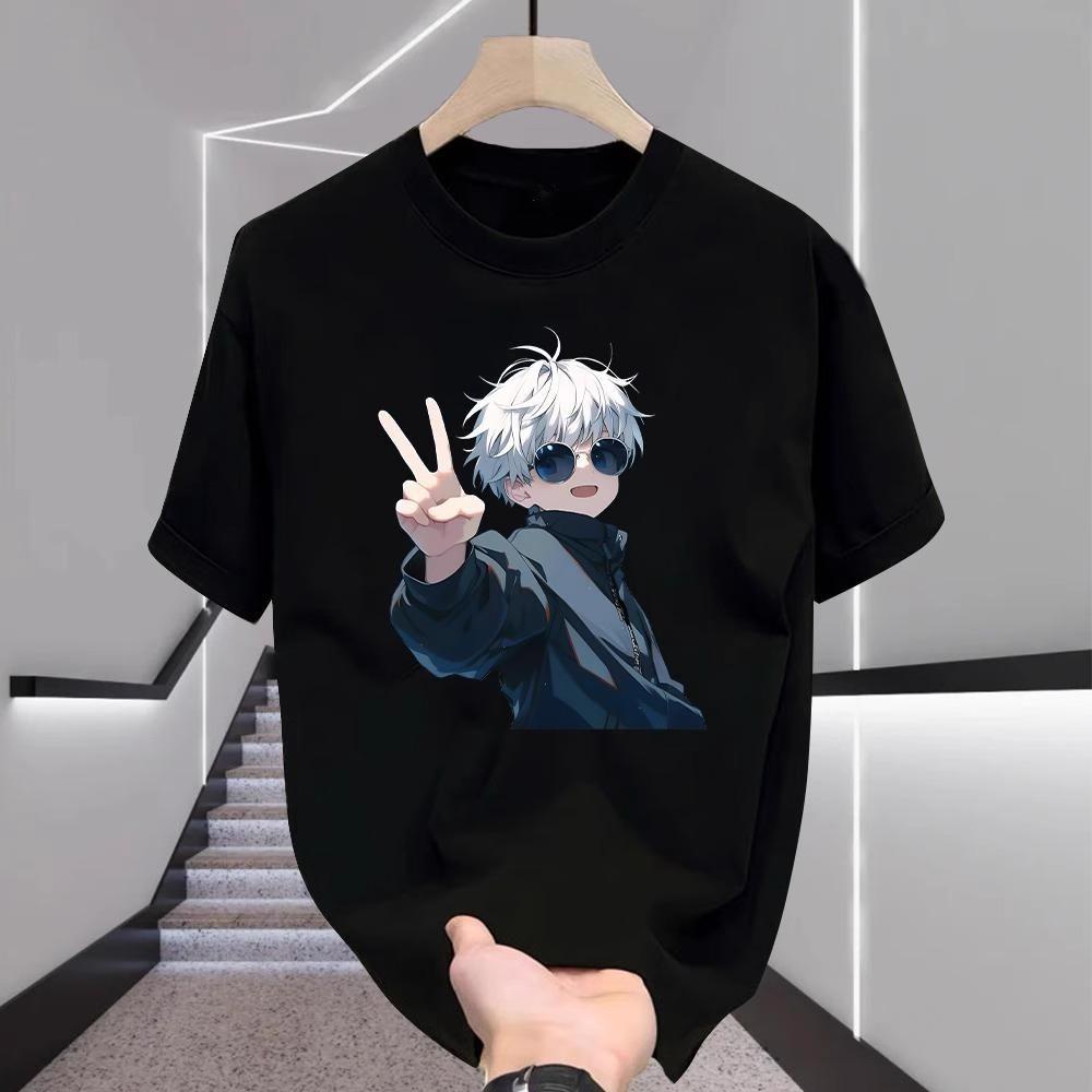 Sommer Rundhals Anime Charakter Bedruckte T-Shirts Hübsches und Hochwertiges Top Modisch Lässig Reine Baumwolle Kurzärmlige Herren T-Shirts
