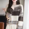 Ein-Hals Strickpullover Langärmeliger Damen Farbblock Fransen Basic-Oberteil Neuer Herbst- und Winterstil Lässiger Stil