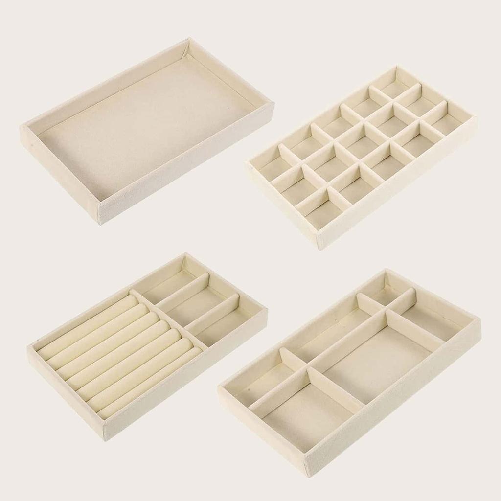 Ein Set aus vier Schmuckkästchen, Auslagefächern, Schubladen zur Aufbewahrung von Ringen, Ohrringen, Schmuckständern, Halsketten, Armbändern, Aufbewahrungsboxen