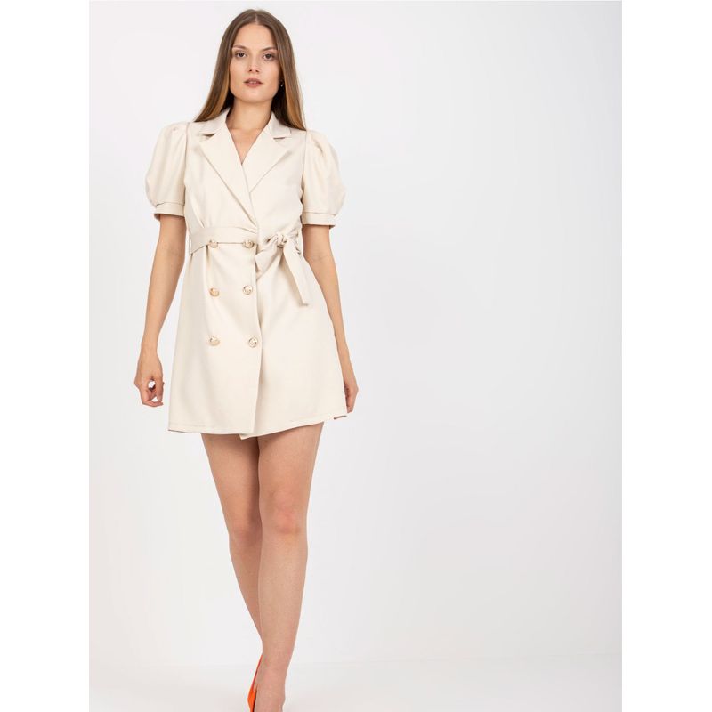 European and American New Fashion Commuter Ol White Double Breasted Strap Waist Hugging Bubble Short sleeve Suit Dress Short dress Women
