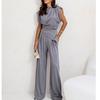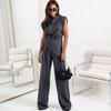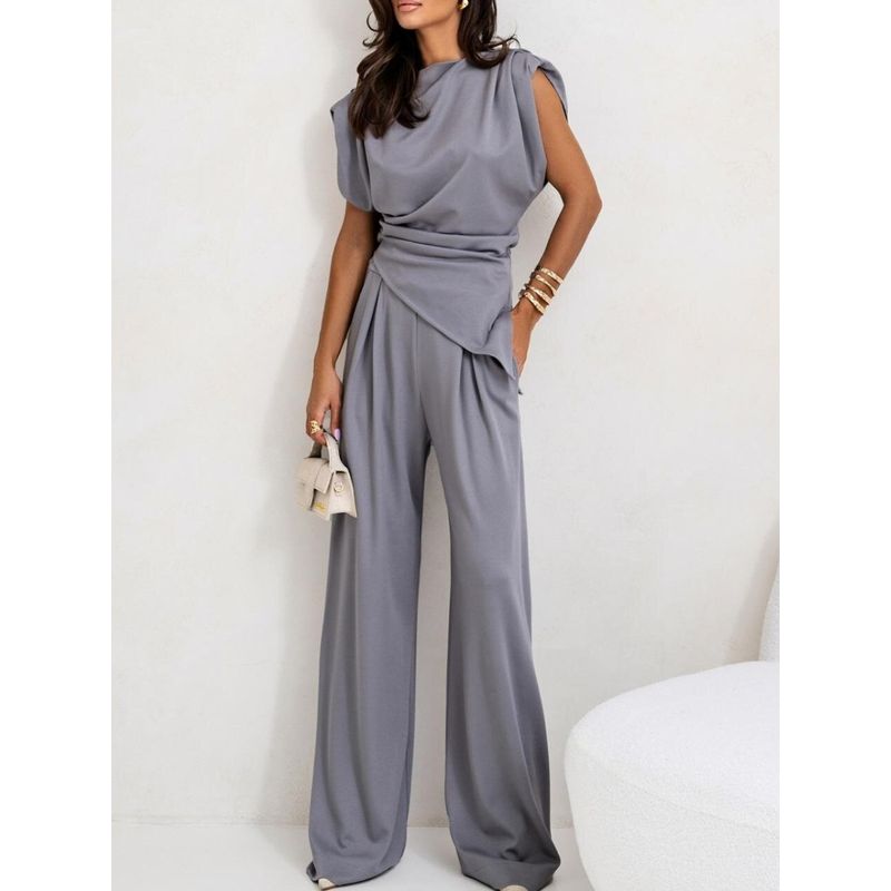 Fashion Spring/Summer New Arrival Fashion Commuter Ol Pure Color Irregular Sleeveless Tops Straight-Leg Trousers Casual Two-Piece Suit