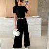 Spring and Summer New Western Style Solid round Neck Short Short sleeve T-shirt Loose Wide Leg Trousers Two-piece Suit Casual Women
