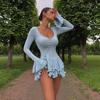 2025 Sommer Ausgestellte Ärmel Geraffte Taille Tief ausgeschnitten Sexy Kleid für Frauen