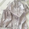 Damen Pyjama Set Kurzarm Student Homewear Zweiteilige Strickjacke Revers Senior Sense of Striped Kurzarm Short