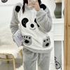 Herbst/Winter Damen Flanell Kapuzen Pyjama Anzug Niedlich Verdickt Langplüsch Homewear Oberbekleidung
