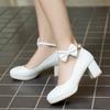 Girls Leather Shoes High Heel Shoes Sweet Bowknot Bridal Wedding Shoes Women High Heels Princess Dress Party Shoes Size 30-43