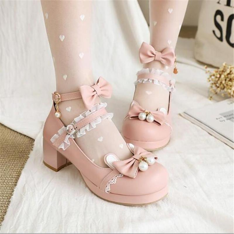 Süße Perle Schleife Mädchenschuhe 2025 Damen Absätze Plateau Spitze Prinzessin Mary Jane Lolita Schuhe Party High Heels Damen Pumps30-43