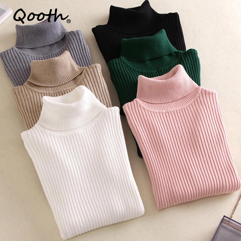 Qooth Rollkragenpullover für Damen Einfarbig Strickoberteil Langarm Essentielle Basics QT2788
