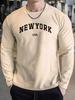 Herren Bequemes Sportliches Lässiges Lockeres Übergröße New York USA Aufdruck Rundhals Langarm T-Shirt Top