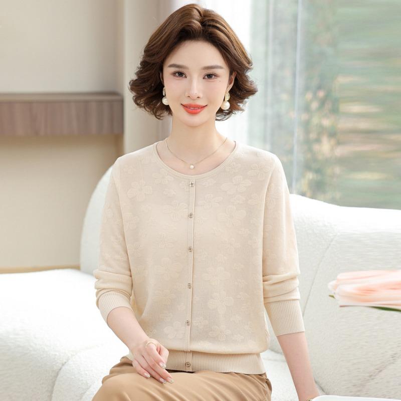 Middle-aged and elderly women's spring and autumn thin knitted sweater, new mother's spring clothes bottomed sweater and top