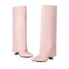 Französische Kurze 9,5cm Absätze Faltstiefel Damen Kniehohe Stiefel Bequem Weich PU Sung Fit Herbst Winterschuhe