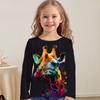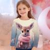 Frühlings- und Herbst-Rundhals-Tier-Giraffe-Rehkitz-Muster 3D-bedrucktes Oberteil Modische lässige langärmelige Kinder-Mädchen-T-Shirts