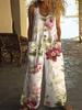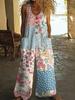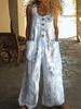 Damen Ärmelloser Jumpsuit mit Blumenmuster, Knopfleiste vorne und Seitentaschen
