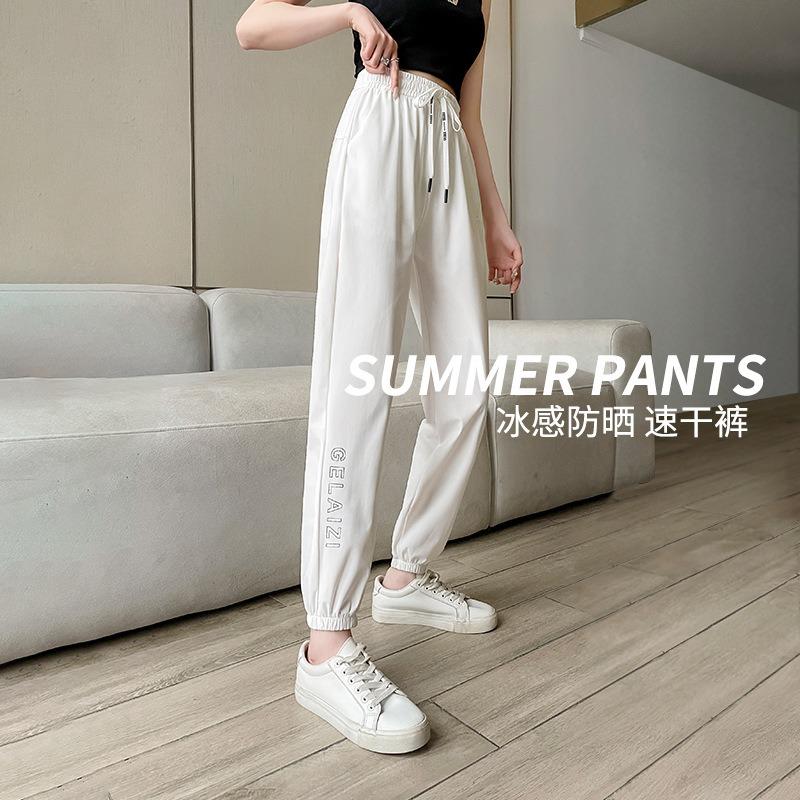 Quick-drying pants new high-waisted casual sweatpants summer loose ice silk sunscreen thin sweatpants children