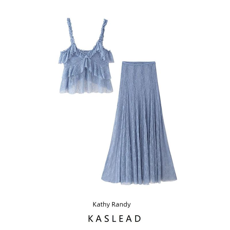 Kaslead New Arrival Women's Clothing Fashion Style Lace Laminated Decoration Tops Skirt 1058155 1058157