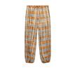 Autumn New Women clothes Lace-up Decoration Fluffy Pants Mid-Waist Ramie Blended Plaid Bloomers 8369034