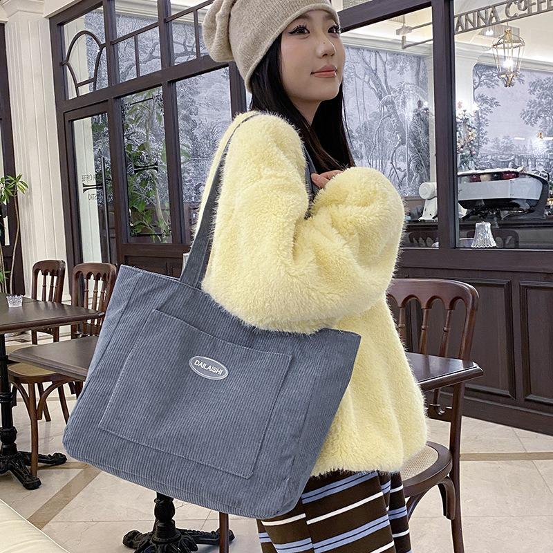 Retro schlichte Cord-Tote-Bag mit großer Kapazität, Damen Herbst und Winter neu, ein Schultergurt, Crossbody, unter dem Arm, lässige Handtasche