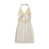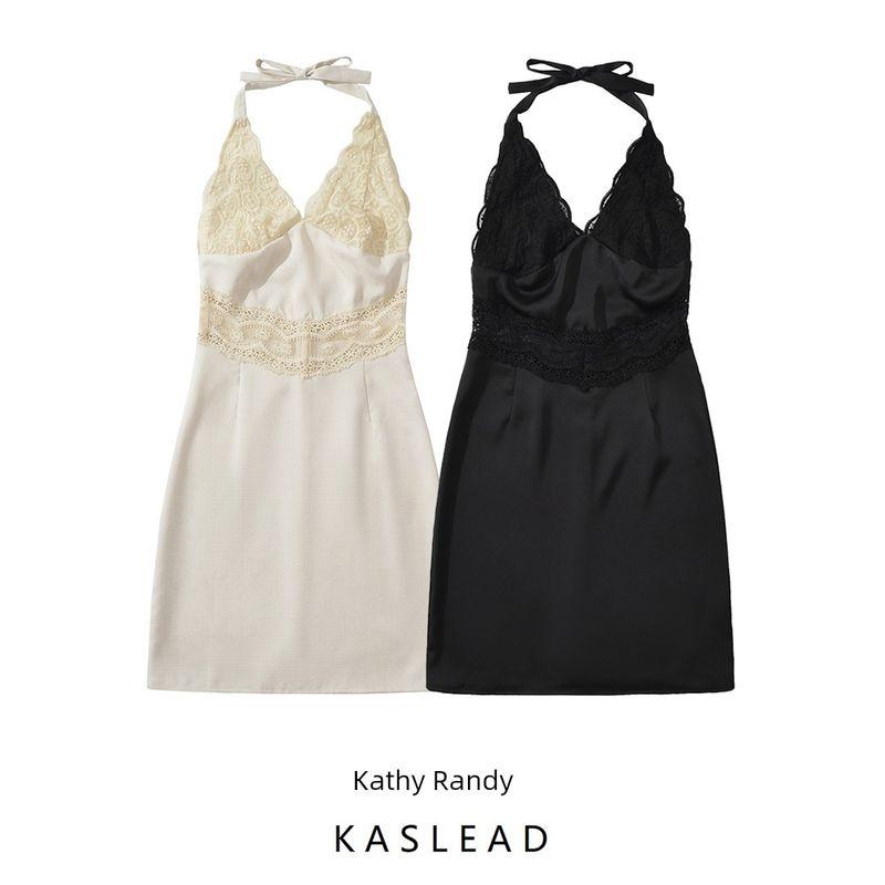 Kaslead New Women clothes Western Style Fashion Slim fit Lace Stitching Hanging Neck Short dress