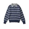 Kaslead New Women clothes Western Style Fashion Simple and Versatile Long sleeve Lapel Stripe Knit sweater
