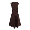 Kaslead New Women clothes Western Style Pleat Silk Net Stand Collar Midi Dress 5039311 700