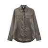 Fall and Winter New Women's Clothing Fashion Style Loose Lapels Pocket Silk Satin Texture Long Sleeves Shirt 8987213