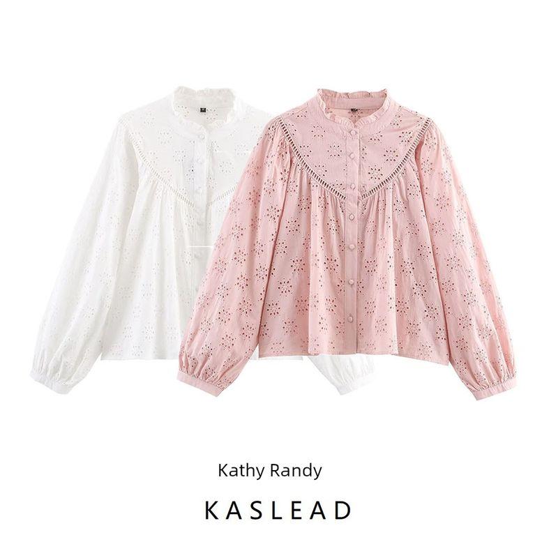 Kaslead New Women clothes Western Style Fashion Simple and Versatile Hollow Embroidery Shirts 8741230
