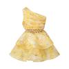 Kaslead New Women clothes Western Style Sexy One Shoulder Waist Hollow out Waist Hugging Floral Dress